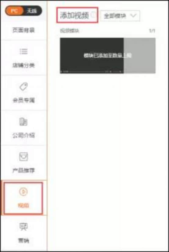 Step3:到旺鋪2.0編輯后臺(tái)添加視頻